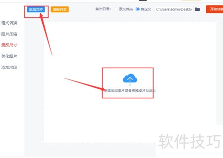 2、 第二步,所示,点击红框内的添加文件按钮,将需转换格式的图片导入软件。该软件...