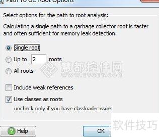 13、 当系统中存在大量垃圾回收根(garbage collector roots)时,若一次性全部展示这些根对象,容易导致信息堆积,影响分析效率,所示。同时,查找所有根对象的过程本身开销较大,尤其在根数量达到成千上万时,不仅计算耗时显著增加,还会占用大量内存资源,可能影响工具的响应速度和稳定性。为避免此类性能问题,推荐采用渐进式的分析策略:初始阶段仅从一个垃圾回收根出发进行追踪,待初步结果生成后,再根据实际需要逐步扩展至更多根对象。通过向上追溯到根(UP to roots)的方式灵活添加新的根,既能控制资源消耗,又能有效定位内存问题,提升排查效率。