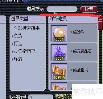 8、 若难以寻获目标收购物品,可直接运用道具搜索功能快速查找。