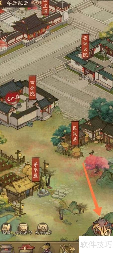 在叫我大掌柜中,角色达到13级后即可开启四合院收购功能,具体操作如下。