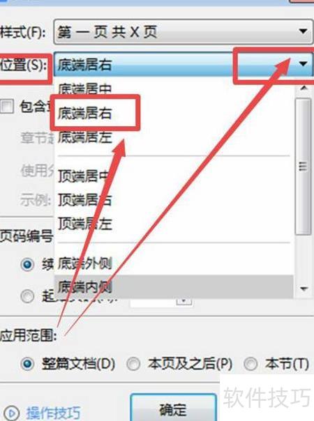 4、 点击位置(S)旁的下拉箭头,打开位置选项菜单,从中选取所需位置,此处我们选定底部居右。
