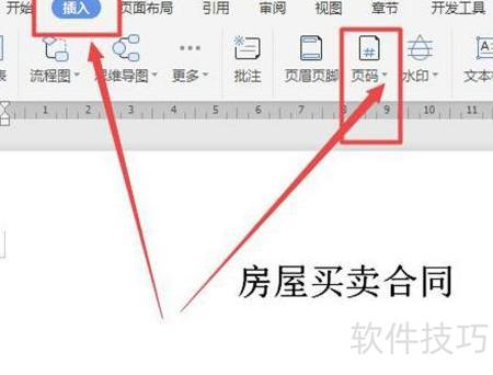 1、 打开WPS合同文档,点击顶部插入选项,在右侧找到页码,点击其右下角的倒三角符号,即可弹出设置对话框。