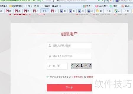 2、 进入注册页面,填写手机号、密码及验证码,点击下一步即可完成注册。