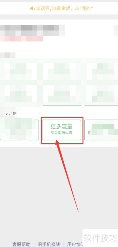 6、 进入手机充值页面,选择更多流量选项,根据需求挑选合适的流量包进行购买即可。