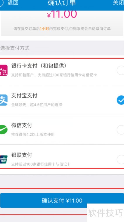 6、 可选择银行卡、微信或支付宝完成付款,点击确认即可。