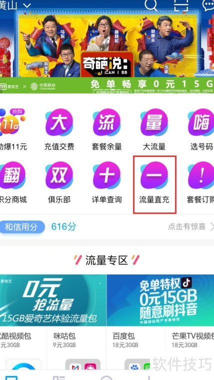 2、 下载中国移动APP,进入后选择流量直充功能即可完成充值。