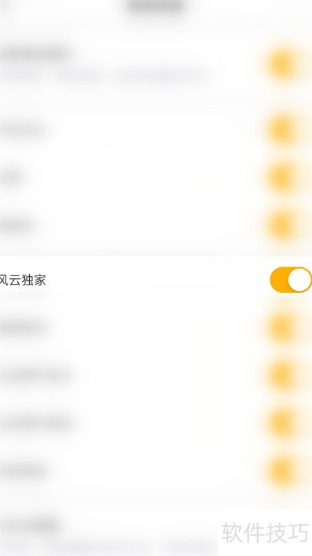4、 在通知设置中点击风云独家右侧的圆点