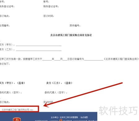 4、 打开建筑工程门窗采购合同并向下滚动查看内容。