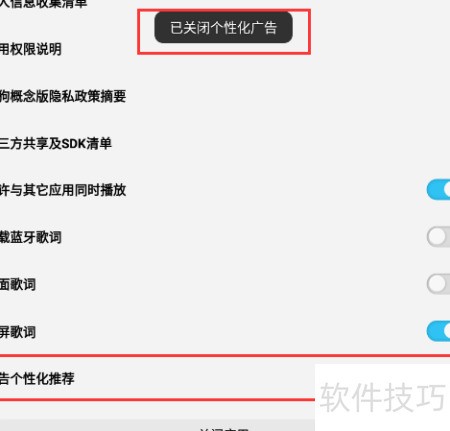 5、 关闭酷狗概念版个性化广告推荐操作已完成。