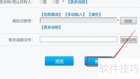 6、 按照提示完成信息填写和材料上传,确认无误后点击提交,即可成功办理商标转让申请。