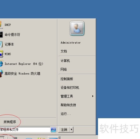1、 启动Windows Server 2008系统,点击任务栏上的Windows徽标图标。