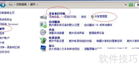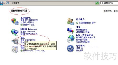3、 随后点击控制面板中的硬件图标