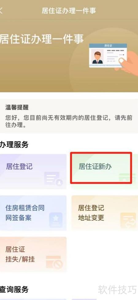 2、 进入居住证办理页面,选择居住证新办进行申请。
