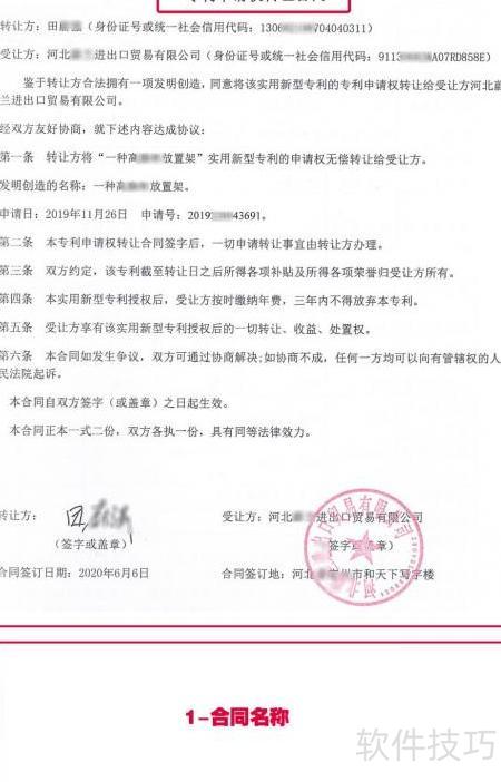 1、 第一步,确定合同名称:若为申请中的专利,使用专利申请权转让合同;若已获授权,则使用专利权转让合同。
