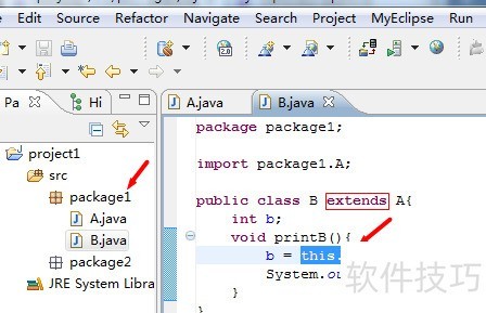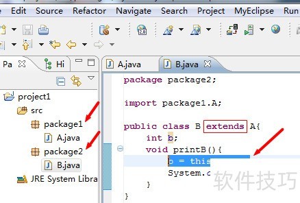 4、 所示,若同一包内的另一个类继承自A,则可访问A的该成员变量。此外,同一包中未继承A的普通类同样能访问该成员变量,具体效果可自行验证。