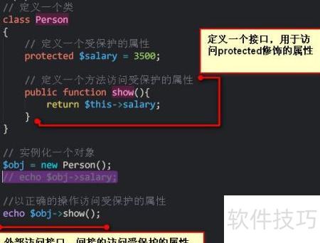 9、 出现上述问题的原因在于,被protected修饰的属性或方法无法在类外部直接访问。可通过在类中定义一个公共方法来间接访问这些受保护的成员,从而实现安全的数据获取与操作。