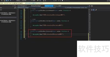 3、 最后点击Protected,进入代码界面,在对应方法中编写需触发的事件代码,所示,立即尝试操作。