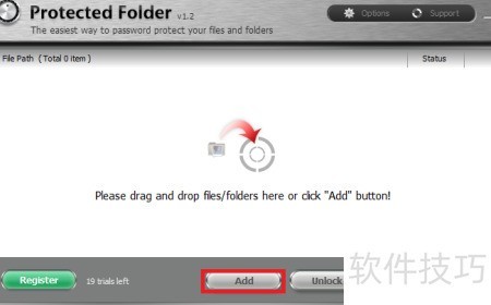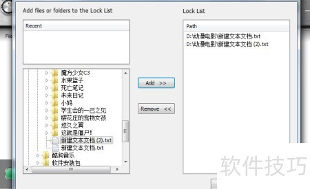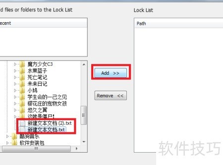 3、 点击Add可添加文件或文件夹,我选中了D盘的一个文件,添加后右侧框内即显示为待加密的文件。
