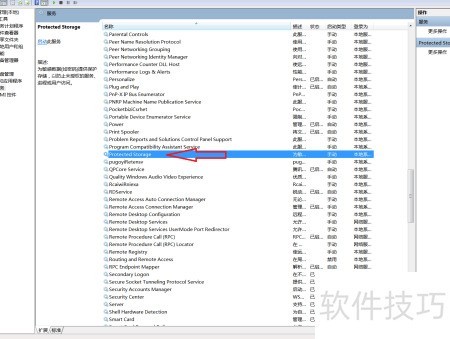 4、 在右侧列表中查找并定位到受保护存储项(所示)。