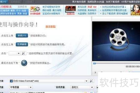 1、 运行DVD转换器后,初始界面会显示简易操作指南。请确保电脑已安装刻录光驱,否则软件无法正常使用。