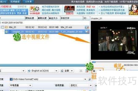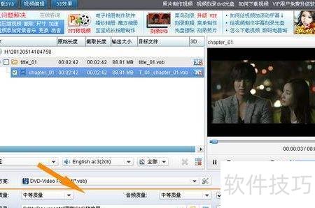 5、 DVD光盘中常包含菜单等文件,需找出真正的视频内容。通常体积较大、播放时间较长的文件即为目标。选中后可在右侧预览窗口播放查看确认。