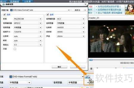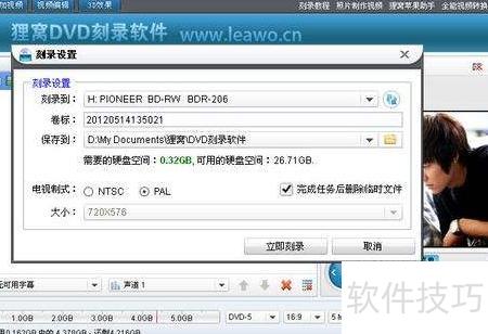 30、 点击右下角的椭圆形按钮进入刻录前配置,选择DVD刻录机所在位置,设定临时文件的存储路径,并决定刻录完成后是否删除这些文件,同时选择电视制式(国内为PAL),其余选项可保持默认设置,无需更改。