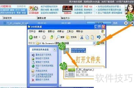 17、 在转换界面点击浏览文件图标,打开文件夹即可查看已生成的VOB格式DVD文件。转换已完成,此时可关闭DVD转换工具。
