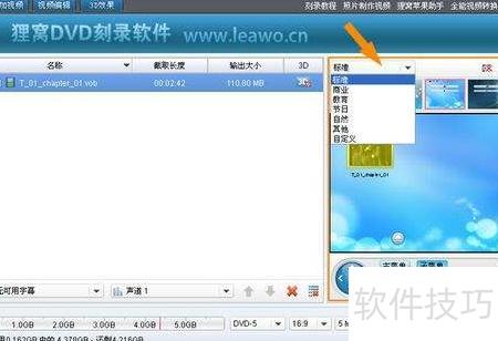 24、 在主界面右侧可预览并编辑菜单模板,提供自然、标准、教育、商务、节日及自定义等多种样式,用户可根据需求选择刻录软件内置的相应模板类型进行设置与调整。