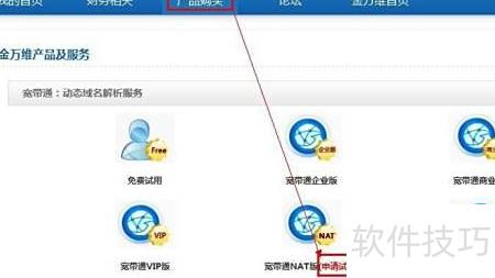 2、 进入产品购买页面,点击宽带通NAT版后的申请试用,即可将账号升级为NAT版本。需在客户端完成切换操作,具体步骤请参考后续说明。