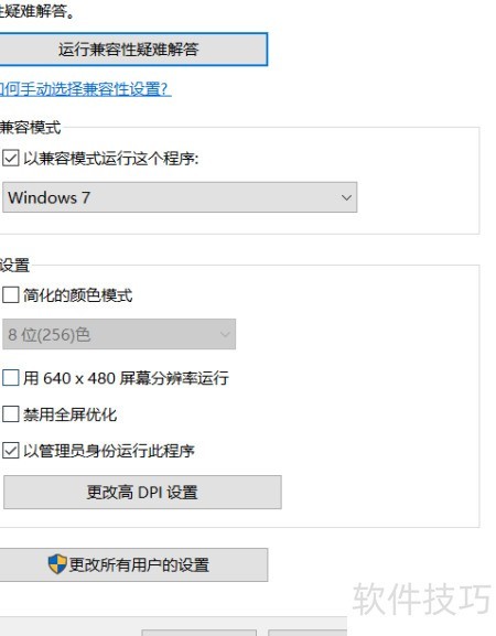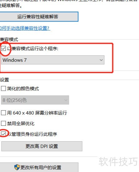 5、 选择Windows 7兼容模式并以管理员权限运行程序。