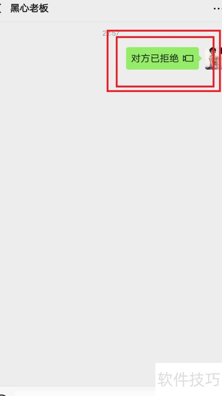 3、 对方拒绝后仍可见消息,表明其已准备接收你即将发送的文字内容。