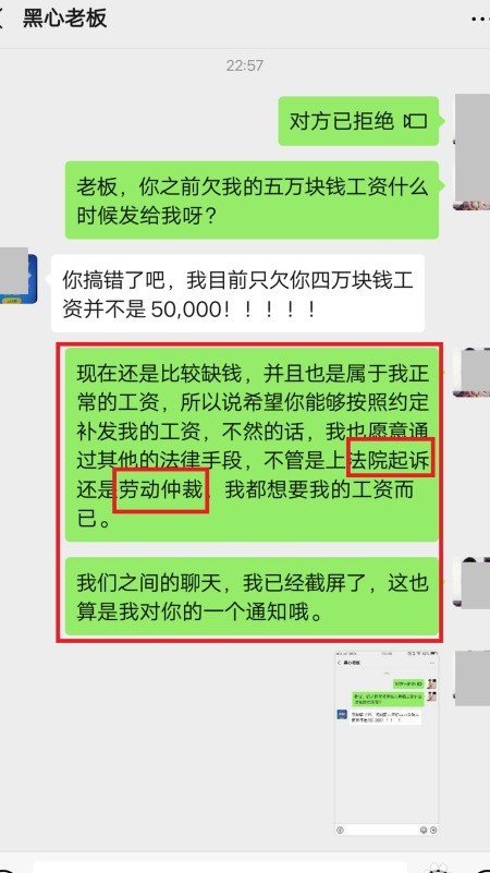 4、 若老板欠薪四万,可称五万多并附图留言催讨。
