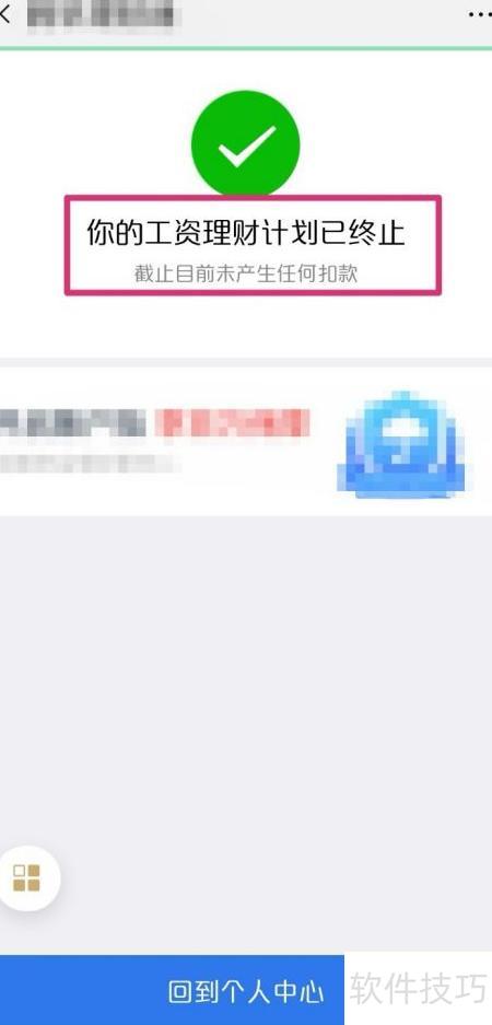 9、 页面提示工资理财计划已终止,表示操作成功。