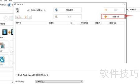3、 进入转mov页面后点击添加文件按钮。