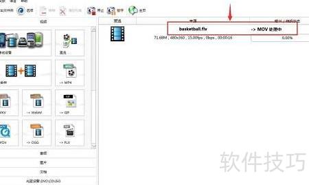 6、 正在等待将FLV文件转换为MOV格式。