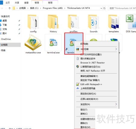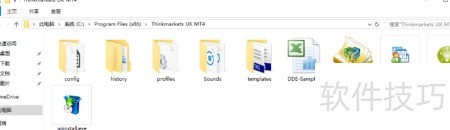 4、 我的MT4安装路径为:C:Program Files (x86)Thinkmarkets UK MT4,该目录下包含平台运行所需的所有程序文件和配置数据。
