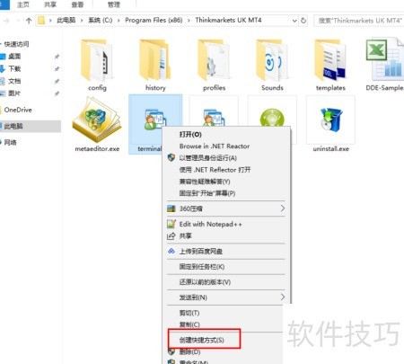 8、 首先在Terminal.exe上点击右键,创建MT4主程序的快捷方式,便于后续操作和快速启动。