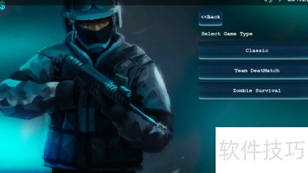2、 进入后选择游戏类型,包含经典、团队及僵尸生存三种模式供玩家体验。