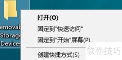 4、 只需右键点击可移动存储设备文件夹,选择创建快捷方式即可完成操作。