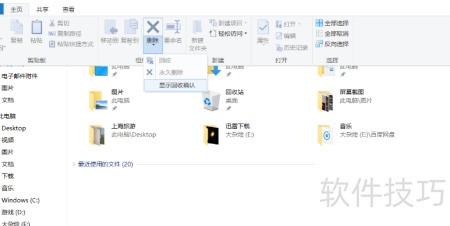 6、 双击打开可移动存储设备文件夹,点击左上角的主页选项,找到其中的删除功能,进入后选择显示回收确认设置,通过该操作同样可以实现对该文件夹的删除处理,整个过程简单直观,便于用户快速完成相关操作。