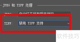 3、 向下滚动找到TIFF属性,将其设置为禁用即可关闭TIFF支持功能。