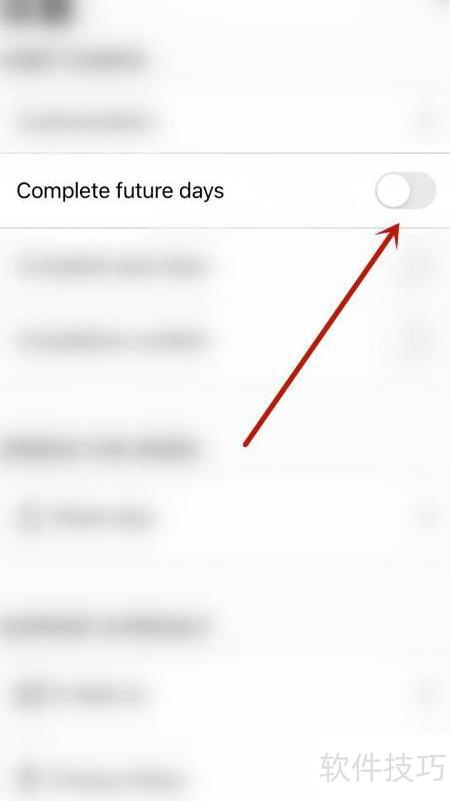 3、 在设置界面中,点击Complete future days选项右侧的圆点。
