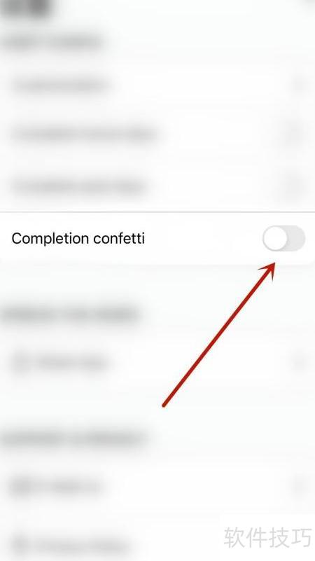 3、 在设置页面中,点击Completion confetti选项右侧的圆形按钮。