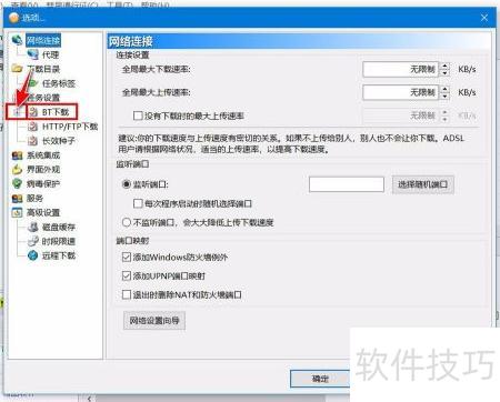 3、 打开选项窗口,展开BT下载设置。