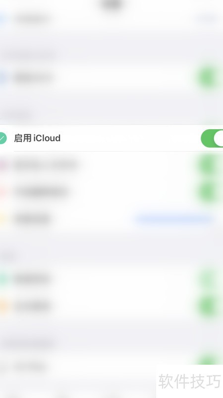 3、 在设置中开启iCloud功能,点击其后的圆点即可。