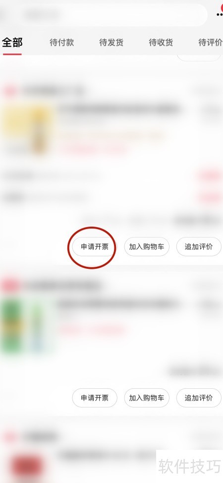 3、 进入订单页面,选择全部,找到售后订单,点击申请开票即可完成操作。