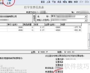 4、 进入红字发票信息表页面,在右下角申请理由栏填写开具红字发票的具体原因,确认内容准确无误后,点击界面顶部的上传按钮。上传成功即表示申请已提交,系统审核通过后,即可直接开具相应的红字发票,完成后续开票操作。