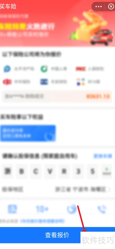 4、 点击车险,输入车牌号,查看报价,上传行驶证,即可获取精准报价。