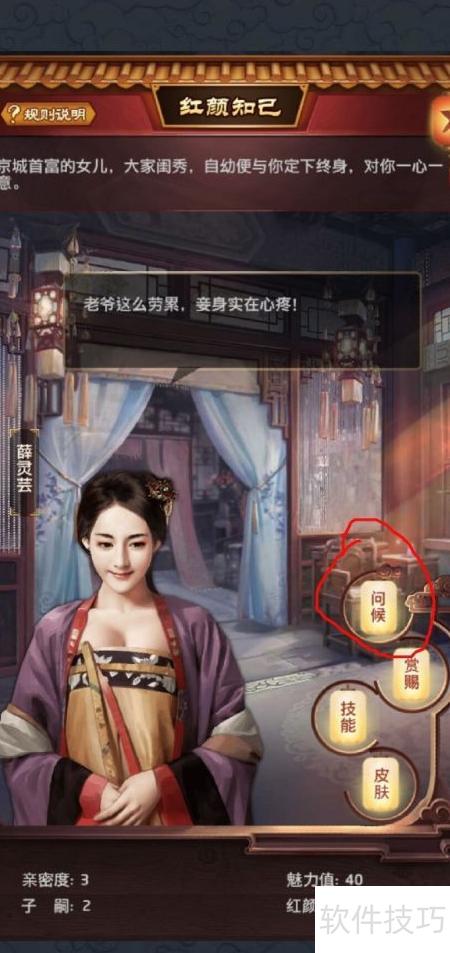 3、 只有完成成就任务并解锁红颜后,才能向她问候。