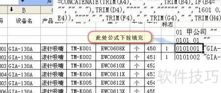 3、 在sheet2工作表中,于A1至F1单元格依次输入以下列标题:单位编码、单位名称、单位编码样式、发票张数编码、发票张数、发票张数编码样式。接着,在A2至F2单元格分别填入:01、甲公司、=CONCATENATE(A2, ,B2, ,,)、0101、01、=CONCATENATE(D2, ,E2, ,,)。完成后,C2和F2单元格将根据公式生成对应的组合文本,呈现所示的效果。其中,C2单元格用于合并单位编码与名称,并添加特定引号格式;F2则合并发票相关编码信息。以上两个公式可依据实际数据量,向下拖动填充至其他行,实现批量处理与自动更新,提升操作效率。